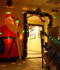К Новому году жители домов по улице Совхозной микрорайона Левобережный решили по-новогоднему украсить подъезды своих домов. А заодно и провести конкурс на лучший подъезд.