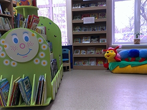 Кроме того, в читальном зале появился плазменный телевизор, а для самых маленьких в библиотеке создан уголок с плюшевой разноцветной софой в виде гусеницы и стеллажом-паровозом, к которому сотрудники библиотеки нарисовали лицо и приклеили бумажные цветочки.