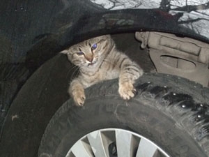капот, он увидел кошачью морду, выглядывающую из рычагов подвески.