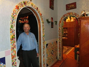 Сначала он поработал над своей новой квартирой – сделал цветные мозаичные арки, панно на стенах, обрамление для часов. Потом украсил выход из подъезда. А затем взялся и за свой балкон.
